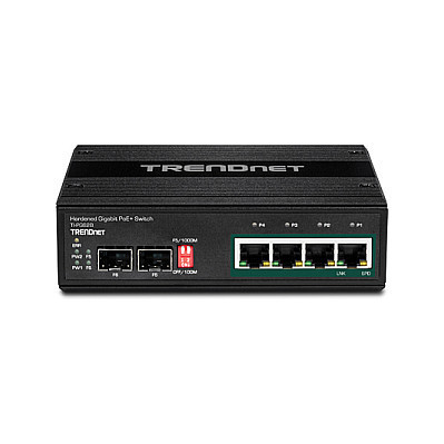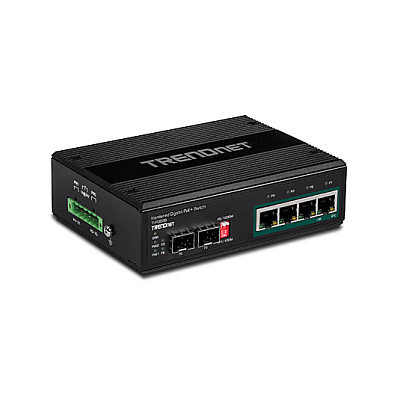 "Trendnet TI-PG62B. Switch type: Unmanaged, Switch layer: L2. Basic switching RJ-45 Ethernet ports type: Gigabit Ethernet (10/100/1000), Basic switching RJ-45 Ethernet ports quantity: 4. Full duplex. MAC address table: 1024 entries, Switching capacity: 12 Gbit/s. Networking standards: IEEE 802.3, IEEE 802.3ab, IEEE 802.3af, IEEE 802.3at, IEEE 802.3u, IEEE 802.3x, IEEE 802.3z. Power over Ethernet (PoE). Wall mountable"\n"TRENDnet’s TI-PG62B is a reliable IP30 unmanaged hardened DIN-rail PoE+ switch with a rugged housing rated for extreme industrial environments. It offers 4 Gigabit PoE+ ports, two dedicated SFP slots and a 12 Gbps switching capacity. Dual redundant 12 – 56 VDC power inputs and a power failure alarm relay."
