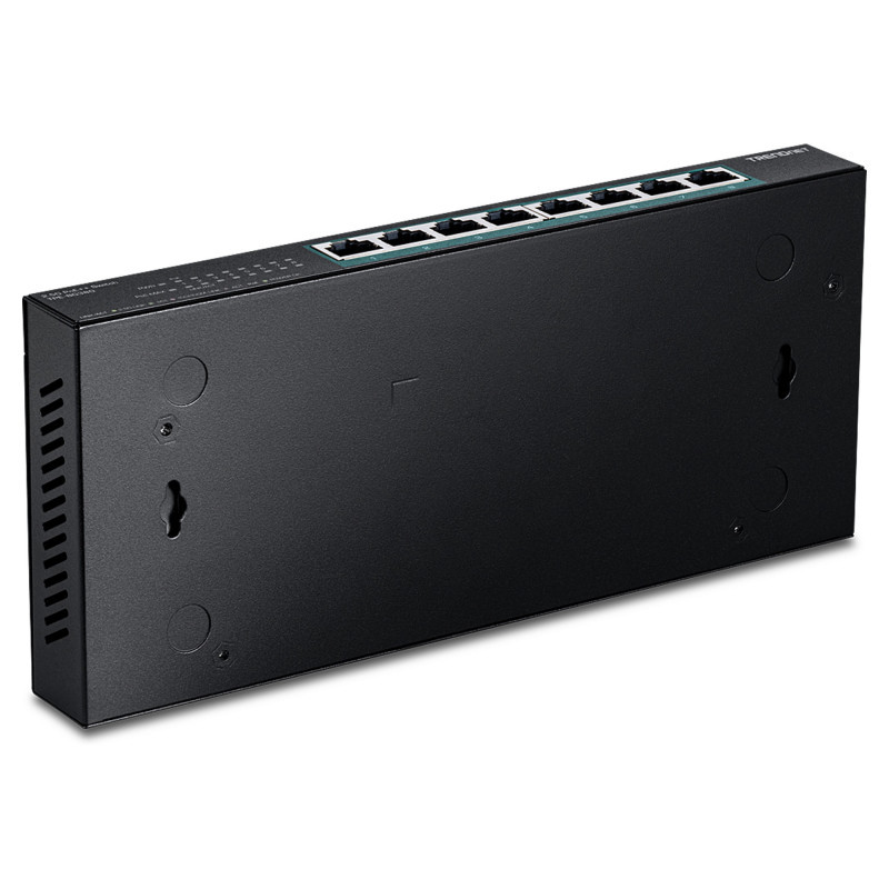 "Trendnet TPE-BG380. Switch type: Unmanaged. Basic switching RJ-45 Ethernet ports type: 2.5G Ethernet (100/1000/2500), Basic switching RJ-45 Ethernet ports quantity: 8. Full duplex. MAC address table: 4000 entries, Switching capacity: 40 Gbit/s. Networking standards: IEEE 802.3, IEEE 802.3ab, IEEE 802.3af, IEEE 802.3at, IEEE 802.3bt, IEEE 802.3bz, IEEE 802.3u,.... DC input voltage: 46 - 54 V. Power over Ethernet (PoE). Wall mountable"\n"Expand your network’s bandwidth and reduce traffic bottlenecks with TRENDnet’s 8-Port 2.5G PoE++ Switch, model TPE-BG380. This 2.5G PoE++ switch is equipped with 2.5GBASE-T RJ-45 ports that provide multi-gigabit speeds capable of up to 2.5Gbps over your existing Cat5e or better cabling. This multi-gigabit PoE++ switch features a durable metal enclosure and can be mounted to the wall for setup flexibility. The fanless design lowers energy consumption and eliminates distracting operating noise.