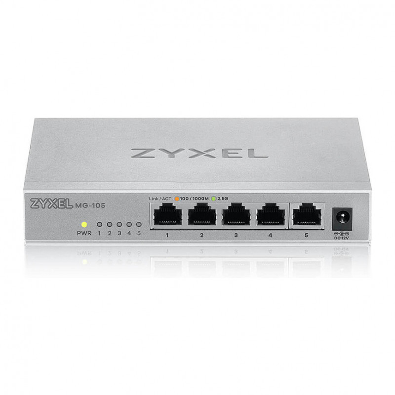 "Zyxel XMG-105. Switch type: Unmanaged. Basic switching RJ-45 Ethernet ports type: 2.5G Ethernet (100/1000/2500), Basic switching RJ-45 Ethernet ports quantity: 5. MAC address table: 16000 entries, Switching capacity: 25 Gbit/s. Networking standards: IEEE 802.1p, IEEE 802.3, IEEE 802.3ab, IEEE 802.3bz, IEEE 802.3u, IEEE 802.3x"\n"Upgrade Network to Multi-Gig