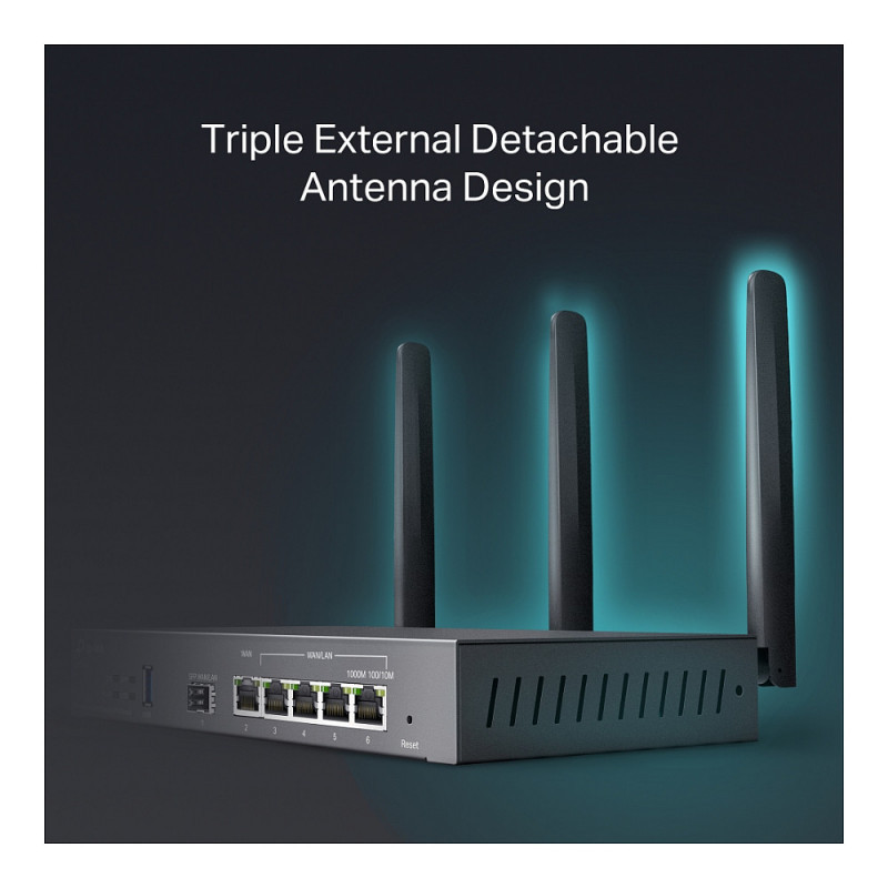 The triple external detachable antenna design grants ER706W excellent wireless coverage, reliable signal strength, and higher receiving sensitivity. It’s easier for users to adjust the quantity and angle of antennas to fit various network environments.