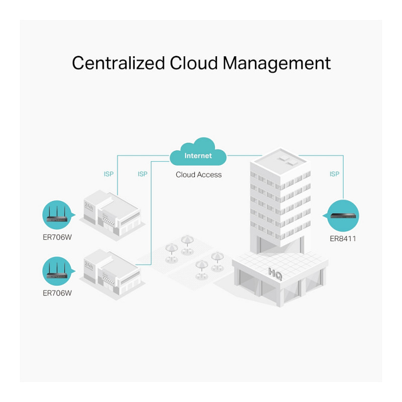 ER706W is able to seamlessly connect to Omada access points that support mesh technology, ideal for large-scale environments. Intelligent self-organization optimizes the best path between ER706W and Omada Access Points while self-healing ensures you stay online even when one AP is disrupted.