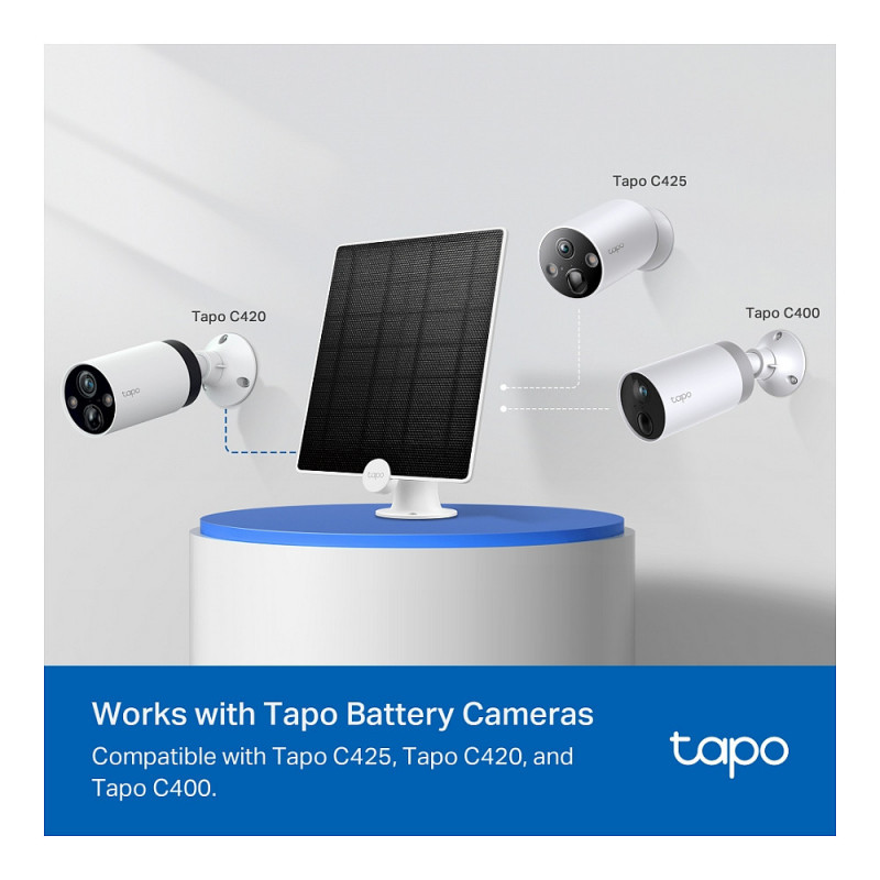 Compatible with Tapo C425, Tapo C420, and Tapo C400, enabling your Tapo battery camera to protect you all year round.