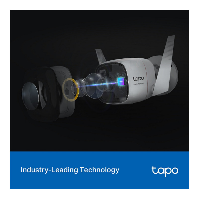 "TP-Link Tapo Outdoor Security Wi-Fi Camera. Type: IP security camera, Placement supported: Indoor & outdoor, Connectivity technology: Wireless. Mounting type: Wall, Product colour: White, Form factor: Bullet. Minimum illumination: 0.0005 lx, Lens viewing angle, diagonal: 127°. Sensor type: CMOS, Optical sensor size: 25.4 / 1.79 mm (1 / 1.79""). Maximum resolution: 2688 x 1520 pixels, Total megapixels: 4 MP, Video compression formats: H.264"\n"Experience Daylight
