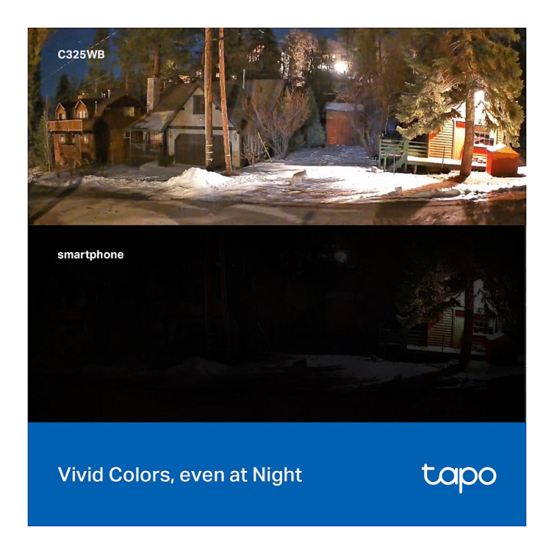 Compared with other full-color night vision cameras, Tapo C325WB won’t be limited to the range of spotlights or floodlights so you can see further and see more colors without dark corners.