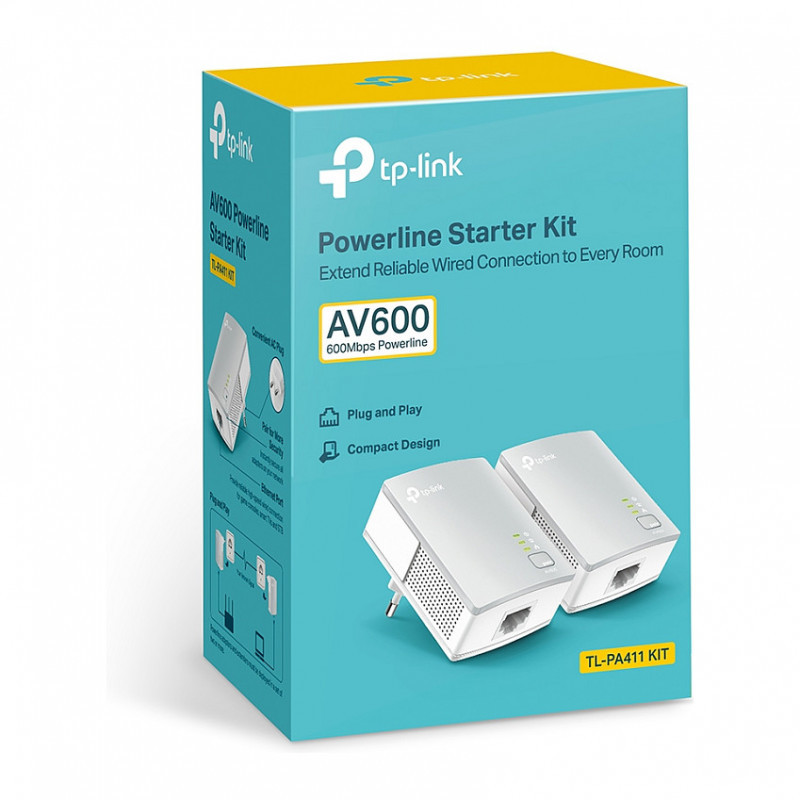 TP-LINK 500Mbps Mini Powerline Adapter Starter KIT TL-PA411KIT turn your existing powerline into a high speed network with no need for new wires or drilling. No configuration is required, simply plug your adapters into your power sockets and you can establish networking infrastructure in a flash. With a speed of up to 500Mbps, TL-PA411KIT transmits multiple HD streams and even 3D movies to every room, making it a great choice for an easy to build multimedia entertainment network.