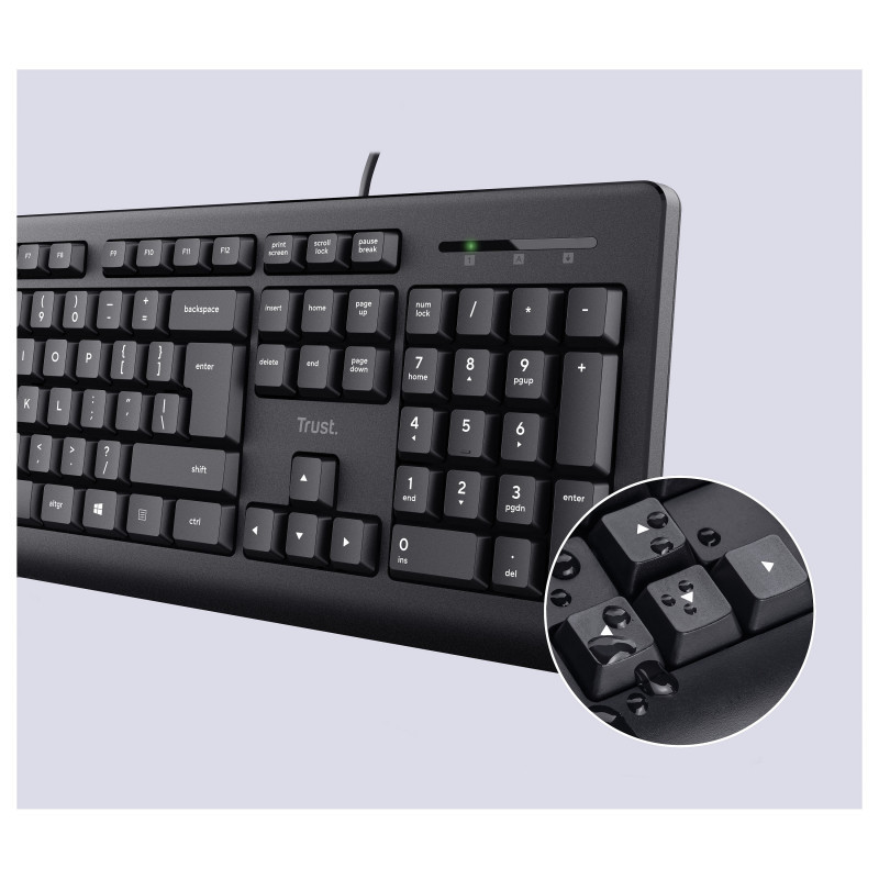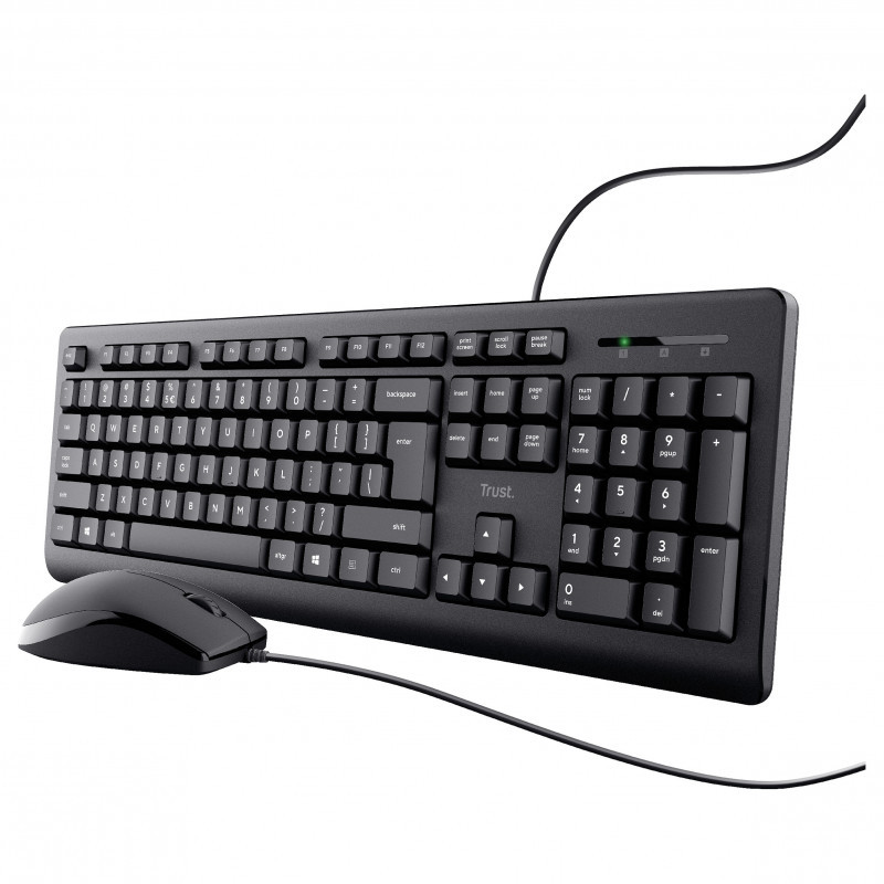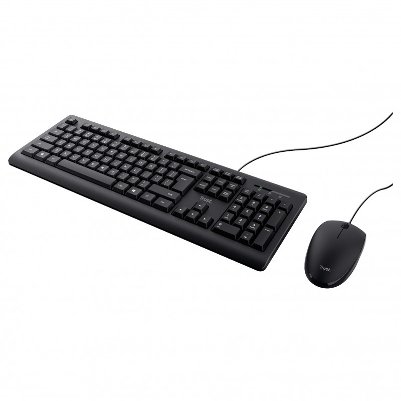 "Trust TKM-250. Keyboard form factor: Full-size (100%). Keyboard style: Straight. Connectivity technology: Wired, Device interface: USB, Keyboard key switch: Membrane, Keyboard layout: QWERTZ. Cable length: 1.8 m. Recommended usage: Office. Product colour: Black. Mouse included"\n"TKM-250 Wired Keyboard And Mouse Set