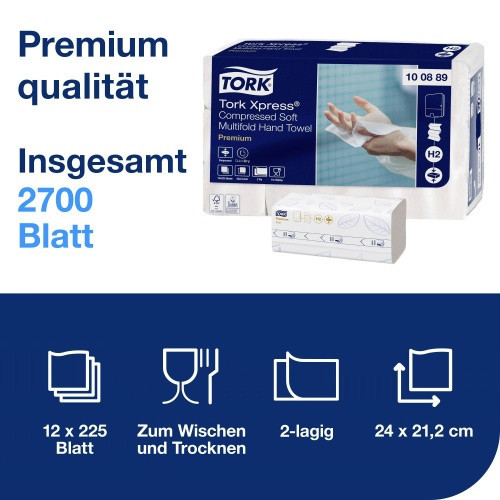 Lapelinis rankšluostinis popierius Tork Xpress Soft Multifold H2, 2 sl.,225 lap.,22.2x24cm, Z, 12vnt