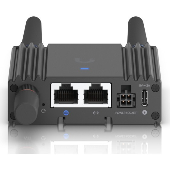 "Ubiquiti UMR-Ultra. Device type: Cellular network router, Product colour: Black, Housing material: Aluminium, Polycarbonate (PC). Ethernet LAN interface type: Fast Ethernet, Ethernet LAN data rates: 10,100 Mbit/s. Wi-Fi standards: 802.11b, 802.11g, Wi-Fi 4 (802.11n), WLAN data transfer rates supported: 1,2,5.5,6,9,11,12,18,24,36,48,54,150,6.5 Mbit/s, Wi-Fi frequency: 2.4 GHz. Data network: 4G, 4G standard: LTE, SIM card type: NanoSIM. USB port type: USB Type-C"\n"Ultra-compact managed LTE mobile router for IoT applications with integrated LTE, wired WAN, WiFi, automatic failover, and DC power input support."