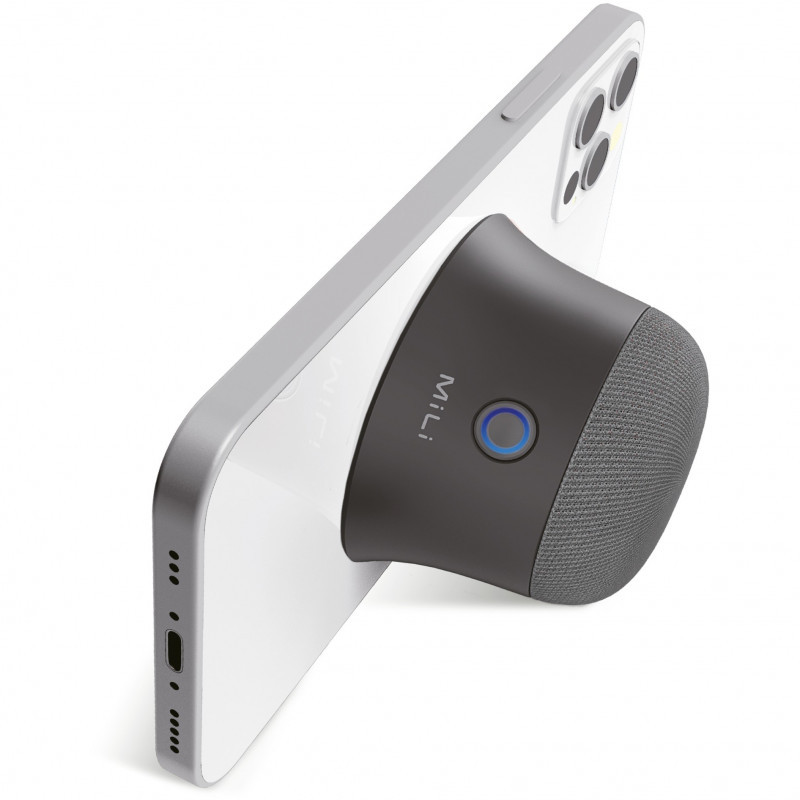 "Ultron Mag Soundmate. RMS rated power: 3 W. Connectivity technology: Wireless, USB connector type: USB Type-C. Product type: Mono portable speaker, Product colour: Black, Product design: Other. Recommended usage: Mobile phone / Smartphone, Brand compatibility: Apple. Battery type: Built-in battery, Power source type: Battery, Battery capacity: 420 mAh"\n