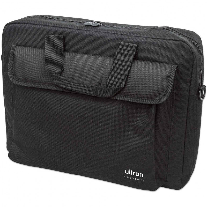"Ultron 371957. Case type: Briefcase, Maximum screen size: 39.6 cm (15.6""), Shoulder strap. Weight: 350 g. Surface coloration: Monochromatic"\n"A safe and comfortable transport of notebooks with 15.6 or 17 inch is given with the ultron Case Basic notebook bag made of high-quality 600D polyester. The padded notebook compartment protects the device from the weather, scratches and knocks, while other accessories can easily be stored in the front pocket. Thanks to the adjustable and detachable shoulder strap, the Case Basic is also the ideal companion when travelling. The padded carrying handles offer further comfort."