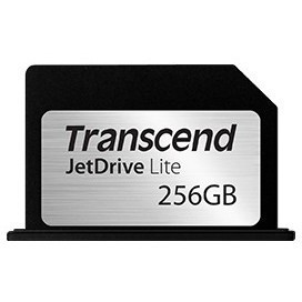 "Transcend JetDrive Lite 330 256GB. Capacity: 256 GB, Read speed: 95 MB/s, Write speed: 55 MB/s. Protection features: Dust resistant, Shock resistant, Water resistant, Product colour: Black, Silver"\n"Introducing Transcend's JetDrive Lite storage expansion cards for the MacBook Air and MacBook Pro with Retina display. JetDrive Lite expansion cards are a quick and easy way to gain the additional space you need without adding any bulk to your MacBook.