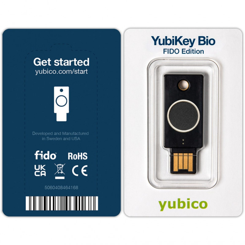 "Yubico YubiKey Bio FIDO Edition. Compatible operating systems: Windows, macOS, Chrome OS, Linux. Product colour: Black, Productivity & communication: Google account, Microsoft account, Salesforce.com, Authentication method: Passwordless, Strong Two Factor, Strong Multi-Factor"\n"YubiKey Bio Series supports biometric authentication using fingerprint recognition for secure and seamless passwordless logins. Built primarily for desktop and designed to offer strong biometric authentication options, the YubiKey Bio Series offers the hallmark hardware security of Yubico, combined with a new user experience.