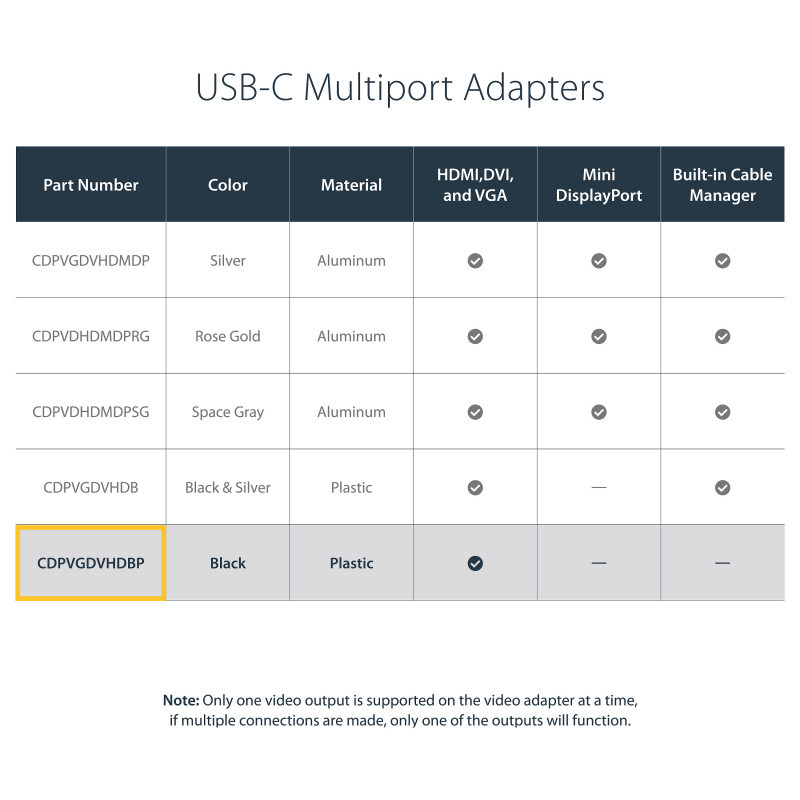 The CDPVGDVHDBP is backed by a StarTech.com 3-year warranty and free lifetime technical support.
