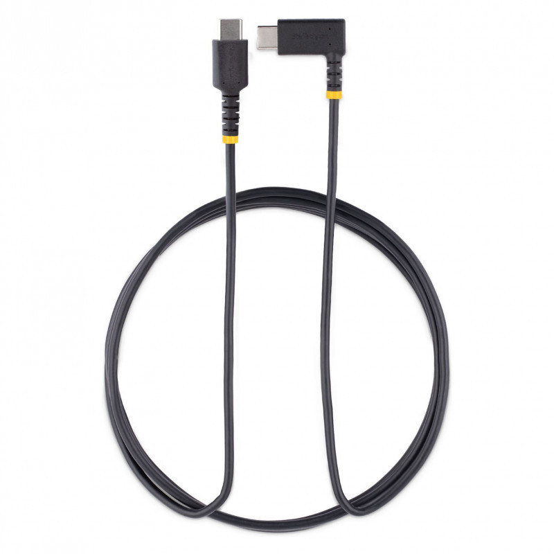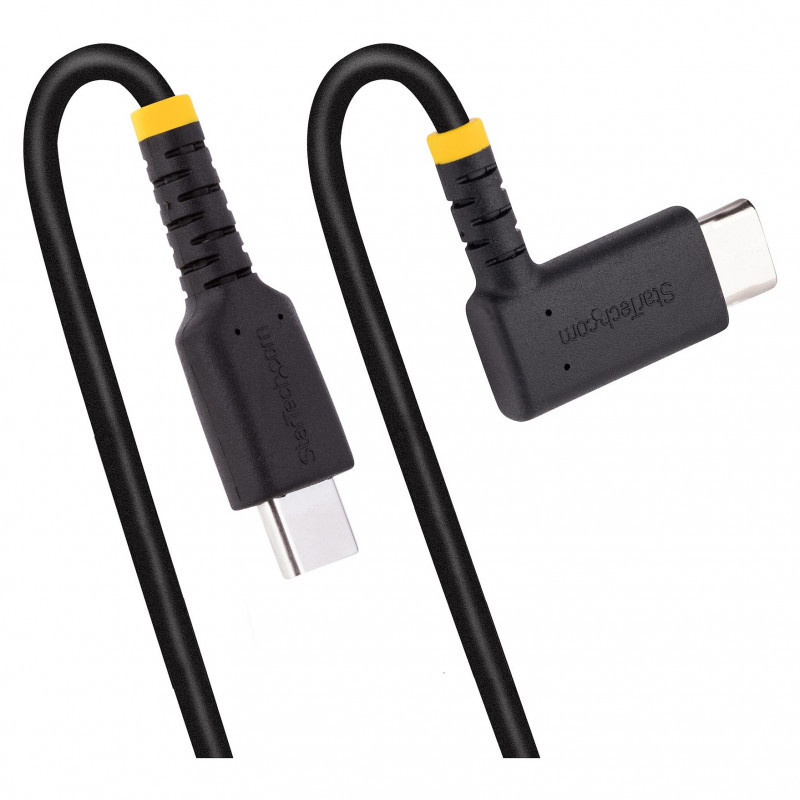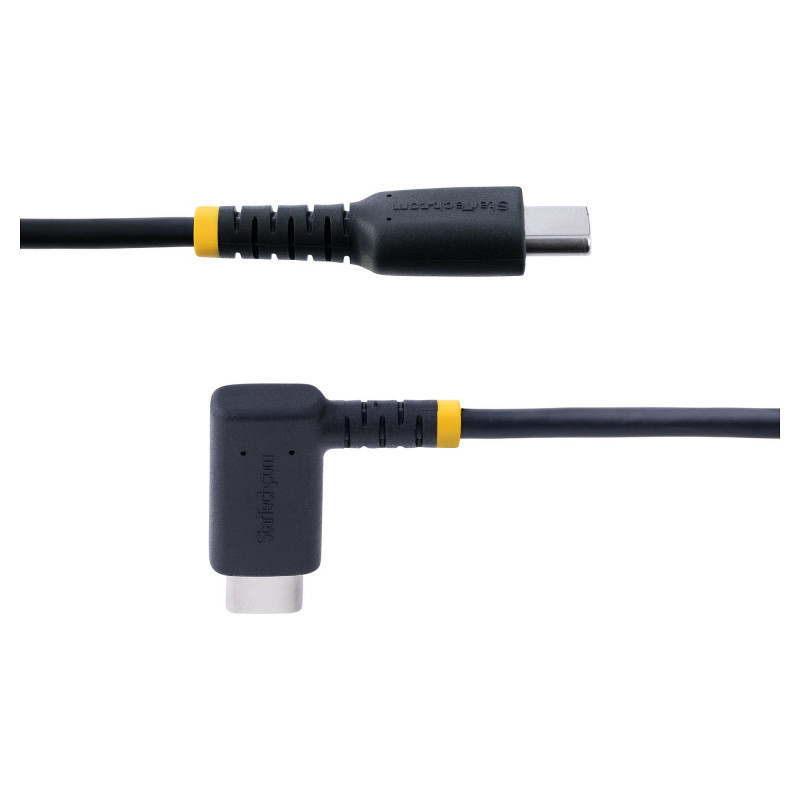 "StarTech.com 6ft (2m) USB C Charging Cable Right Angle - 60W PD 3A - Heavy Duty Fast Charge USB-C Cable - Black USB 2.0 Type-C - Rugged Aramid Fiber - USB Charging Cord. Cable length: 2 m. Connector 1: USB C, Connector 2: USB C, USB version: USB 2.0, Maximum data transfer rate: 0.48 Gbit/s, Product colour: Black"\n"Connect and charge USB Type-C devices with a rugged right-angle cable