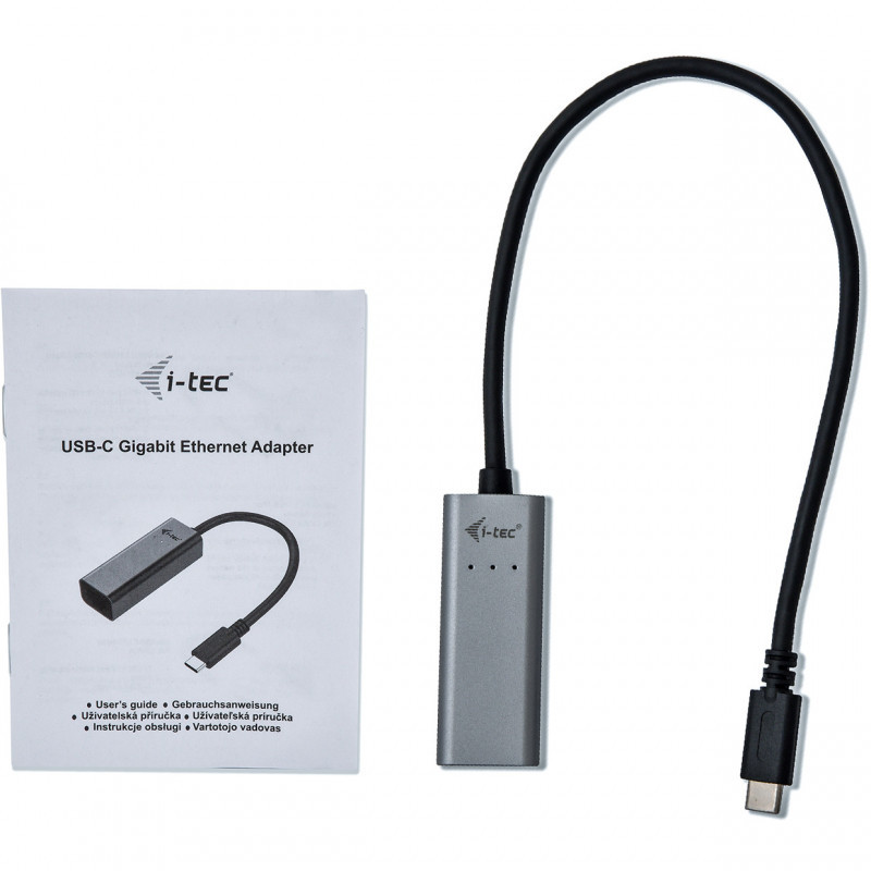 "i-tec Metal USB-C Gigabit Ethernet Adapter. Connectivity technology: Wired, Host interface: USB Type-C, Interface: Ethernet. Maximum data transfer rate: 1000 Mbit/s. Product colour: Grey"\n"Wi-fi connection is comfortable, however, if you require performance without any compromise, nothing will perform better than a Gigabit Ethernet port; modern devices however often miss this important port. This docking station allows you to easily access to 10/100/1000 Mbps network. You can enjoy high speed internet access without any interruption.