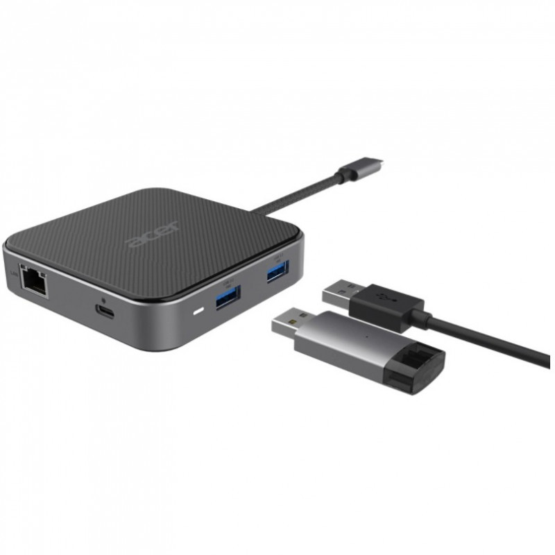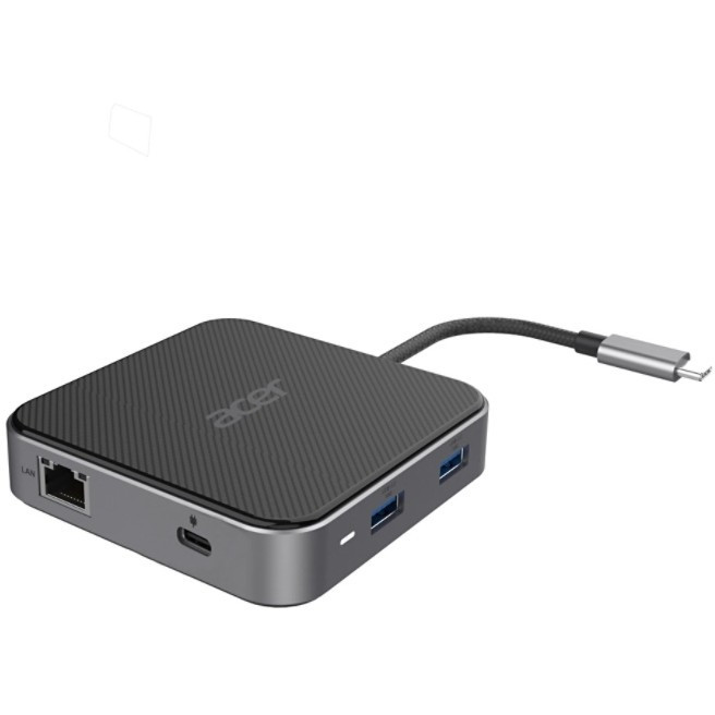 "Acer 7-in-1 USB 4 Dongle. Connectivity technology: Wired, Host interface: USB4, USB Power Delivery up to: 100 W. Ethernet LAN data rates: 10,100,1000 Mbit/s. Product colour: Black, Silver, HD type: 8K Ultra HD, Maximum digital resolution: 7680 x 4320 pixels. Other operating systems supported: ChromeOS. Width: 87 mm, Depth: 87 mm, Height: 20 mm"\n"High tech in a small package