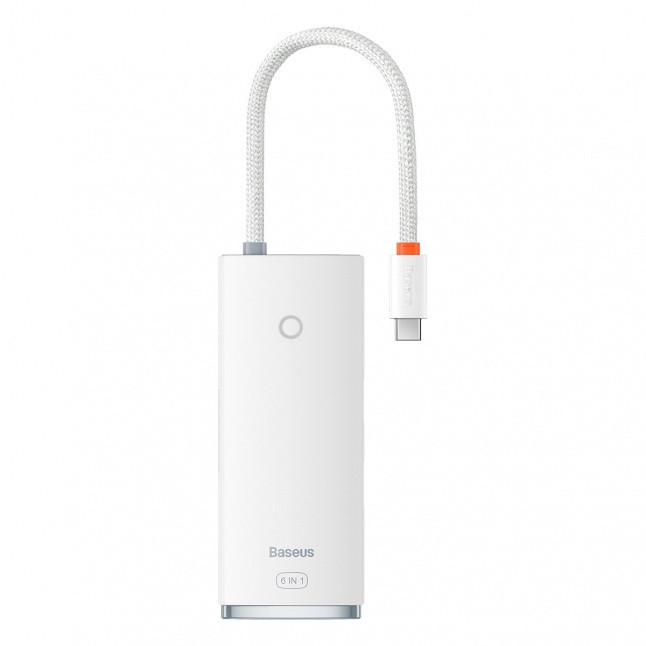 Baseus Lite Series 6-in-1 USB-C HUB (balta, modelis WKQX050102) – tai kompaktiškas ir funkcionalus prievadų koncentratorius, skirtas išplėsti jūsų įrenginio jungiamųjų galimybių spektrą. Šis HUB turi du USB 3.0 prievadus, vieną USB-C PD prievadą, HDMI 1.4 prievadą, SD ir TF kortelių skaitytuvus, leidžiančius lengvai prijungti įvairius įrenginius ir perkelti duomenis. Jis palaiko 4K@30Hz HDMI išvestį, todėl puikiai tinka prijungti nešiojamąjį kompiuterį ar planšetinį kompiuterį prie išorinio ekrano. USB-C PD prievadas leidžia greitai įkrauti jūsų įrenginį, o SD/TF kortelių skaitytuvai suteikia patogumą perkelti duomenis iš atminties kortelių. Kompaktiškas dizainas ir baltas korpusas užtikrina estetinį suderinamumą su įvairiais įrenginiais.