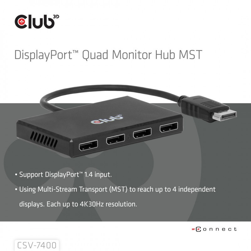 CLUB3D CSV-7400 vaizdo signalų daliklis DisplayPort 4x DisplayPort