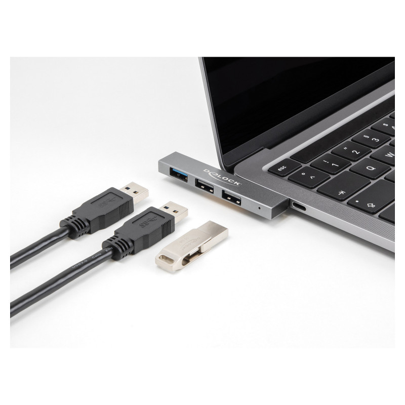 USB Šakotuvai | DELOCK 3 Port Slim USB Hub mit USB Type-C zu 1 x USB 10 Gbps USB Typ-A + 2 x USB 2.0 Typ-A