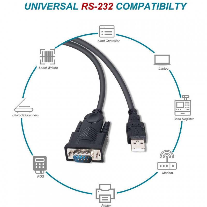 "Equip USB-A to Serial (DB9) Cable, M/M 1.5m. Product colour: Black, Cable length: 1.5 m, Connector 1: USB Type-A. Quantity per pack: 1 pc(s), Package width: 275 mm, Package height: 175 mm. Compliance certificates: CE, RoHS. Weight: 77 g. Master (outer) case width: 300 mm, Master (outer) case length: 200 mm, Master (outer) case height: 460 mm"\n"""The equip 133391 USB-C to Serial DB9 adapter lets you connect your USB devices to your legacy serial devices. Converts a USB-C port on your laptop or computer to a Serial DB9 with COM port retention. This gives you a cost-effective and convenient way to connect to serial devices such as POS terminals, serial modems, industrial equipment and a host of other RS232 peripherals.