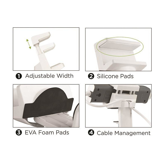 "VALUE Clamp-On Power Strip Holder, White. Product type: Power extension holder, Product colour: White, Material: Acrylonitrile butadiene styrene (ABS), Silicone, Steel. Width: 100 mm, Depth: 62 mm, Height: 163 mm. Quantity per pack: 1 pc(s)"\nYes