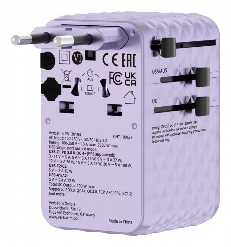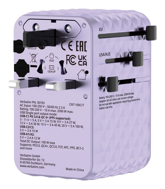 Verbatim 30193 mobiliojo įrenginio kroviklis Universalus Violetinė AC Spartusis įkrovimas Vidaus
