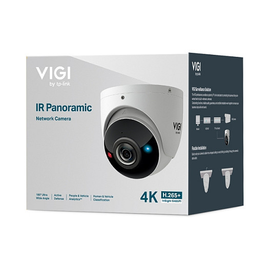 "TP-Link InSight S485PI. Type: IP security camera, Placement supported: Outdoor, Connectivity technology: Wired. Mounting type: Wall, Product colour: White, Form factor: Turret. Lens viewing angle, horizontal: 180°, Lens viewing angle, vertical: 86°, Lens viewing angle, diagonal: 180°. Sensor type: CMOS, Optical sensor size: 25.4 / 2.7 mm (1 / 2.7""). Sensor type (panoramic camera): CMOS"\n"One Shot, Huge Vision