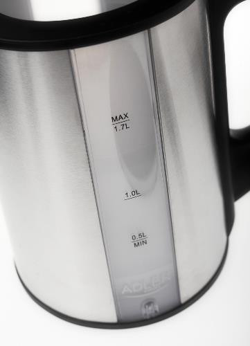 Adler AD 1216 elektrinis virdulys 1,7 L Juoda, Sidabras 2200 W