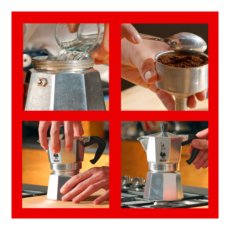 "Bialetti Moka Express. Product type: Moka pot, Capacity: 0.23 L, Product colour: Aluminium. Quantity per pack: 1 pc(s). Products per pallet: 384 pc(s), Master (outer) case gross weight: 3.7 kg, Products per master (outer) case: 6 pc(s)"\n"The original Moka Express evolves. The aesthetical transformation is noted in the smoother lines of the handle, knob and top, in the elegant shiny finish and more visibility given to the Little Man with the Moustache. The functional evolution improves the ergonomics and guarantees top quality and complete safety."
