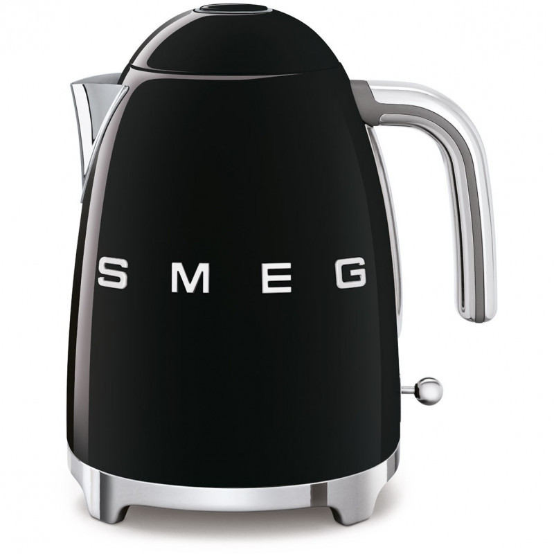 "Smeg 50's Style Kettles KLF03BLEU Black. Water tank capacity: 1.7 L. Power: 2400 W. Product colour: Black, Housing material: Plastic, Stainless steel, Water level indicator, Overheat protection. Cordless. Filtering"\n"Smeg's iconic retro design offers a pop of colour and a premium enamelled finish. With a generous capacity of 1.7 litres, Smeg's KLF03 kettle makes up to 7 cups of tea or coffee. The spout has been specially designed with a balanced weight for an easy pour. The elegant soft opening lid not only looks beautiful but allows for easy filling and ensures that any condensation runs back into the kettle.
