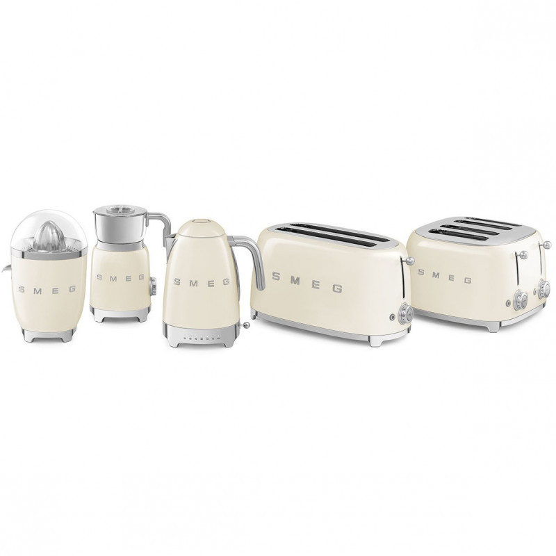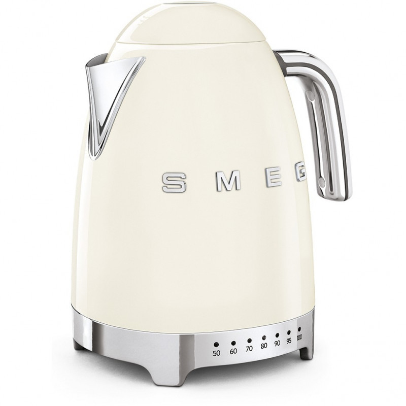 "Smeg 50's Style Kettles KLF04CREU Cream. Water tank capacity: 1.7 L. Power: 2400 W. Product colour: Cream, Housing material: Plastic, Stainless steel, Adjustable thermostat, Water level indicator, Overheat protection. Cordless. Keep warm function, Filtering"\n"Smeg's iconic retro design offers a pop of colour and a premium enamelled finish. The KLF04 variable temperature kettle allows you to choose from 7 set temperatures ranging from 50°C to 100°C. With a generous capacity of 1.7 litres, you can make up to 7 cups of your favourite tea whether it be breakfast, green, or fruit. The keep warm button allows you to keep the water at your selected temperature for up to 20 minutes, ensuring the perfect beverage is always to hand.
