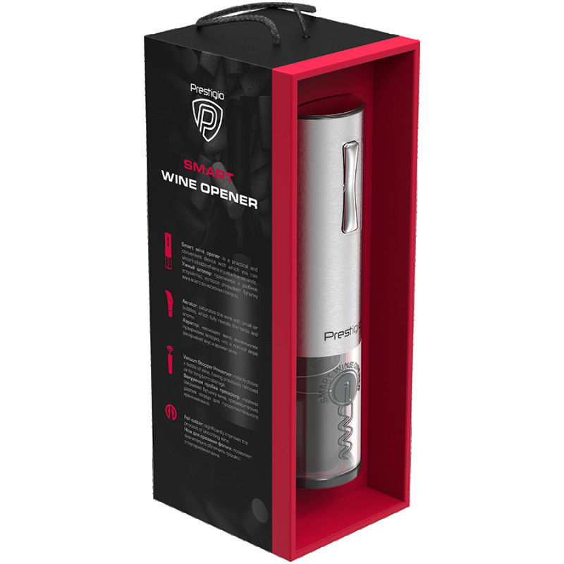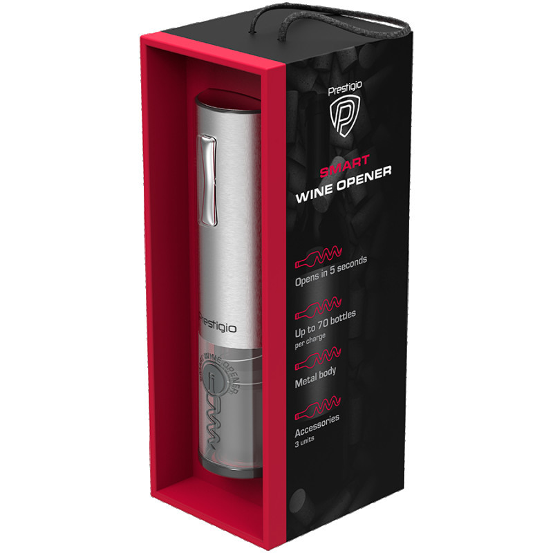 „Nemi Electric Wine Opener“ – modernus elektrinis vyno atidarytuvas, skirtas lengvam ir greitam butelių atidarymui. Komplekte yra vyno aeratorius, kuris pagerina gėrimo skonį, bei vakuuminis butelių konservatorius, padedantis išlaikyti vyną šviežią ilgesnį laiką. Sidabrinės spalvos dizainas suteikia elegancijos ir dera prie bet kurios virtuvės ar baro aplinkos. Patogus, greitas ir stilingas sprendimas vyno mėgėjams.