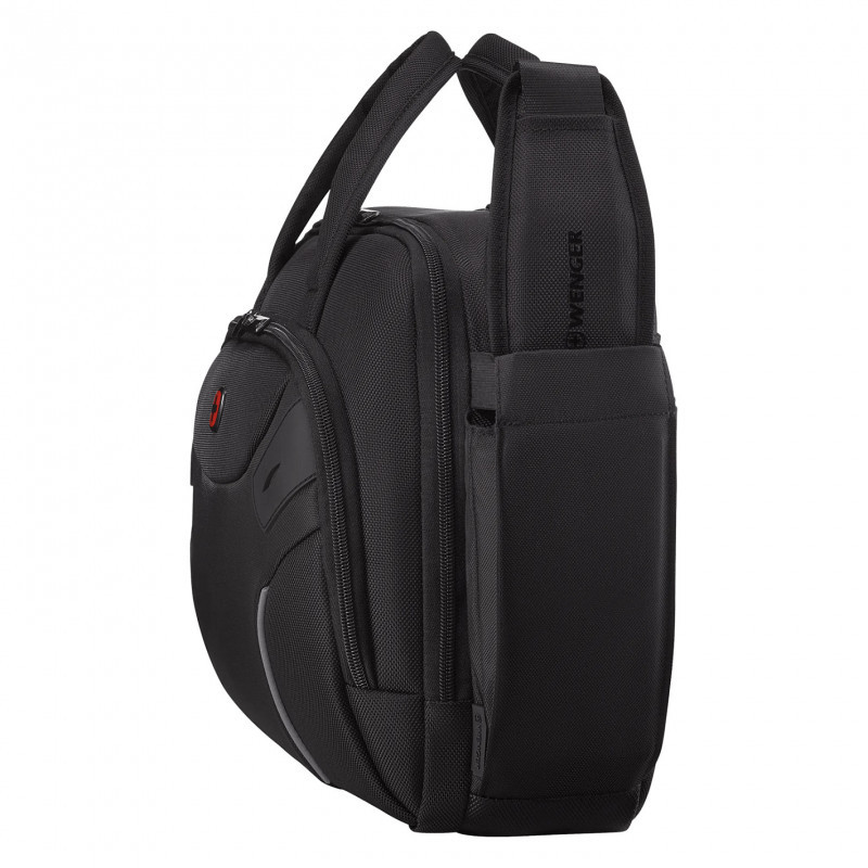 "Wenger/SwissGear 653497. Case type: Briefcase, Maximum screen size: 40.6 cm (16""), Carrying handle(s), Shoulder strap. Weight: 900 g"\n"Conquer your day with the Cosmic Brief 14-16 – the ultimate companion for your tech-savvy lifestyle. Crafted with a main outer fabric from recycled PET bottles, this functional laptop briefcase is designed to elevate your everyday journey. The Triple Protect laptop sleeve ensures your laptop stays protected, with adjustable sizing from 14"" - 16"", offering flexibility for various devices. Stay organized with the dedicated padded 10"" tablet pocket, file divider, and the practical SmartOrg organizer. Experience effortless carry with the concealable, shock-absorbing shoulder strap, while the Pass-Thru trolley strap allows for seamless integration with your luggage for convenient travel."