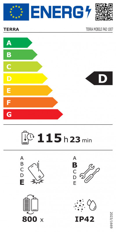 "TERRA PAD 1007. Display diagonal: 27.8 cm (10.9""), Display resolution: 1920 x 1200 pixels. Internal storage capacity: 256 GB. Processor family: Mediatek, Processor model: Helio G99. Internal memory: 8 GB. Rear camera resolution (numeric): 13 MP, Rear camera type: Single camera, Front camera resolution (numeric): 5 MP. Top Wi-Fi standard: Wi-Fi 5 (802.11ac). Assisted GPS (A-GPS). Card reader integrated. Weight: 500 g. Operating system installed: Android 14. Product colour: Grey"\n