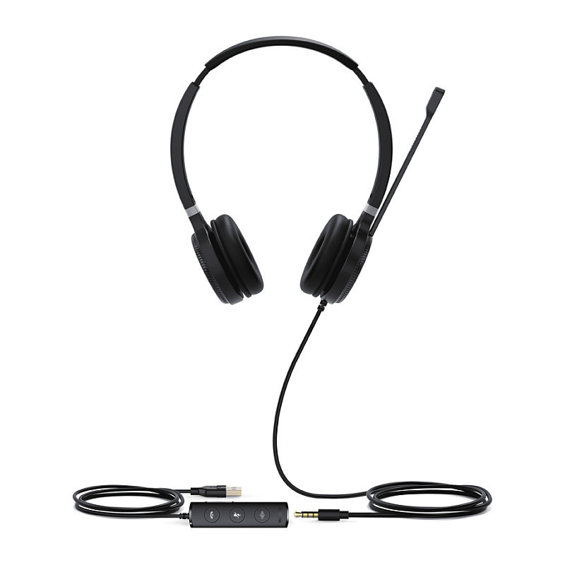 "Yealink UH36 Dual. Product type: Headset. Connectivity technology: Wired. Recommended usage: Office/Call center. Headphone frequency: 20 - 20000 Hz. Cable length: 1.2 m. Weight: 155 g. Product colour: Black, Silver"\n"Powering your high efficiency business