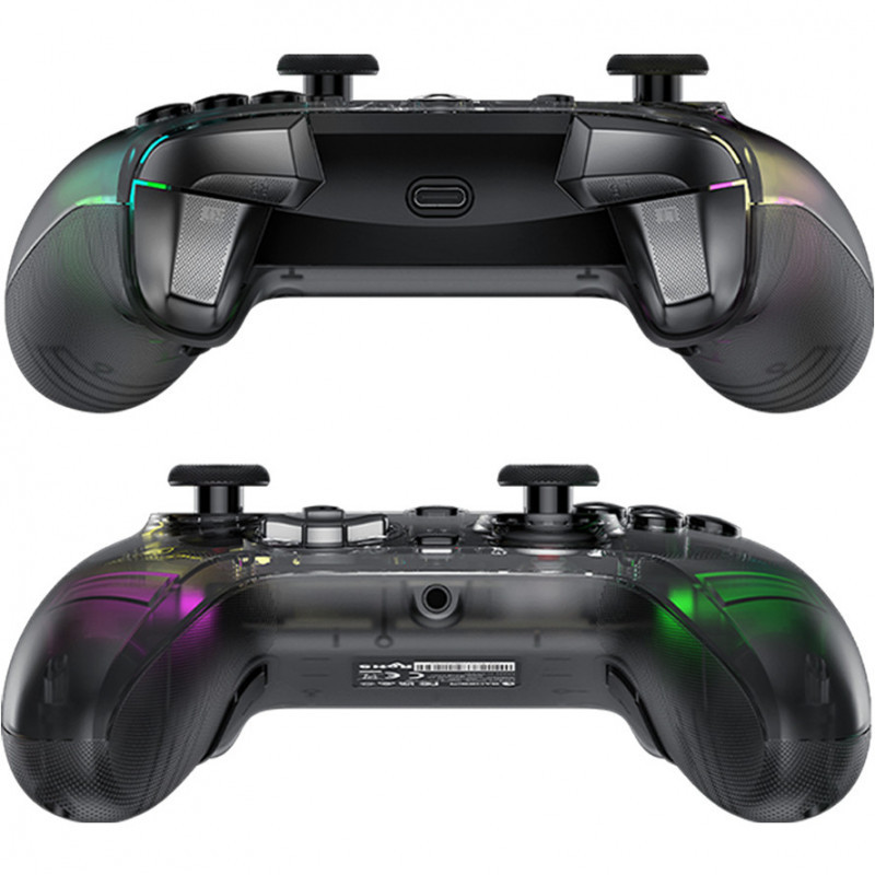 "GameSir Kaleid. Device type: Gamepad, Gaming platforms supported: Xbox One, Xbox Series S, Xbox Series X, Gaming control function buttons: D-pad, Menu button, Microphone mute button, Mode button. Connectivity technology: Wired, Device interface: USB, USB connector type: USB Type-C. Product colour: Black, Transparent, Cable length: 3 m. Power source: Cable. Windows operating systems supported: Windows 10, Windows 11"\n
