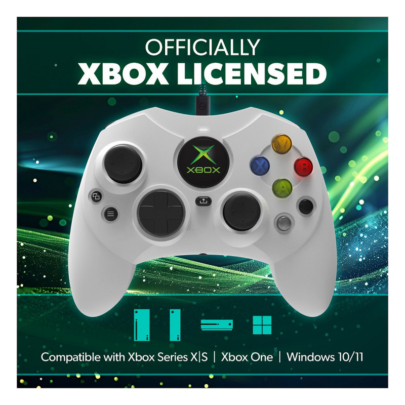 "Hyperkin DuchesS. Device type: Gamepad, Gaming platforms supported: Xbox Series S, Xbox Series X, Xbox One, Gaming control function buttons: Share button, D-pad, Directional buttons. Connectivity technology: Wireless, USB connector type: USB Type-C. Product colour: White. Power source: Battery. Package width: 184.2 mm, Package depth: 82.6 mm, Package height: 152.4 mm"\n"Hyperkin DuchesS – The Iconic Xbox Controller Reimagined