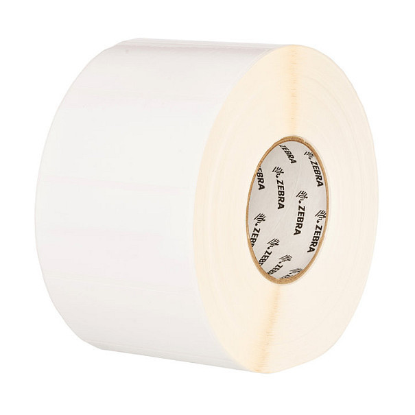 "Zebra PolyO 3100T. Product colour: White, Label type: Self-adhesive printer label, Type: Die-cut label. Label width: 10.2 cm, Label height: 15.2 cm, Core diameter: 7.62 cm. Labels per pack: 3800 pc(s), Labels per roll: 950 pc(s)"\n"White, corona-treated polyolefin facestock that provides flexibility for labeling curved or rough surfaces; minimal resistance to scratching and smearing. Recommended for applications that require up to 6 months outdoors; temperature exposure up to 200° F/93° C."