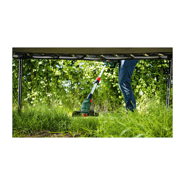 "Bosch UniversalGrassCut. Type: 2-in-1 Brush cutter & String trimmer, Cutting diameter (max): 26 cm, Height adjustment: 30 cm. Power source: Battery, Battery voltage: 18 V, Battery capacity: 2 Ah. Weight: 2.4 kg, Width: 260 mm, Depth: 340 mm. Country of origin: Germany"\n