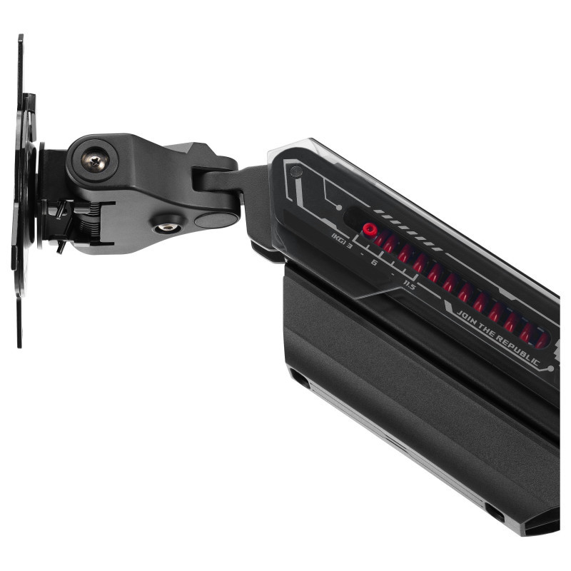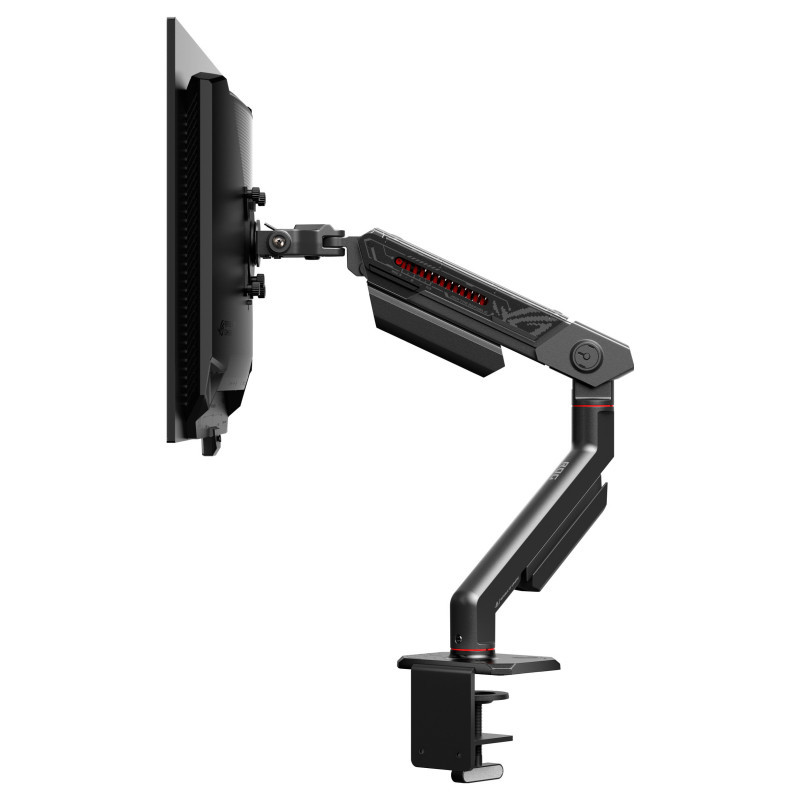Level up your gaming experience with the ROG Ergo Monitor Arm. Its compact bracket design maximizes desk space and provides perfect viewing angles with extensive height, tilt, and swivel adjustments for ultimate ergonomic comfort."