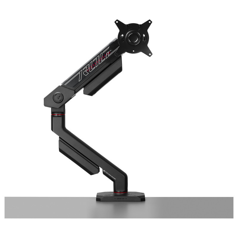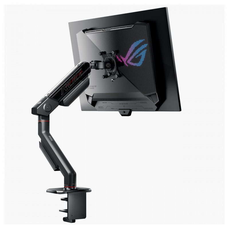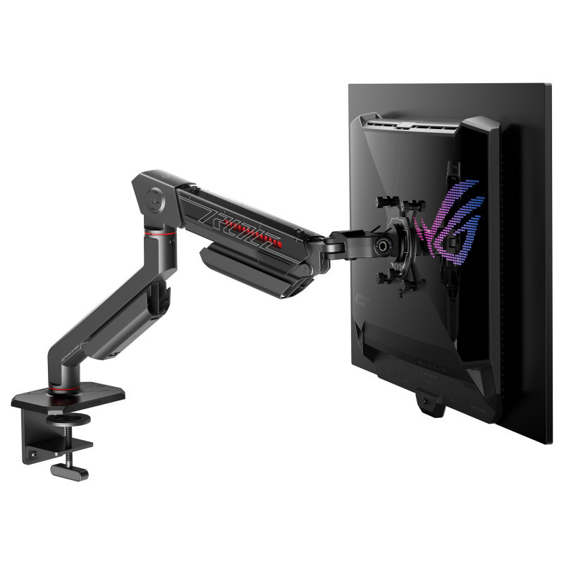 "ASUS AAS01R. Mounting: Clamp/Grommet, Maximum weight capacity: 13.5 kg, Maximum screen size: 124.5 cm (49""), Minimum VESA mount: 100 x 100 mm, Maximum VESA mount: 100 x 100 mm. Height adjustment, Swivel angle range: -90 - 90°, Tilt angle range: -25 - 80°. Product colour: Black"\n"ROG ERGO MONITOR ARM